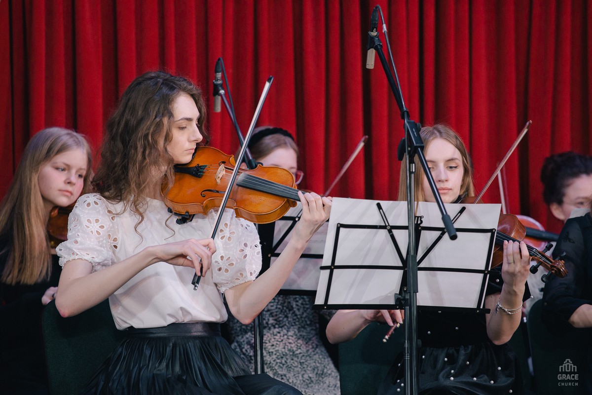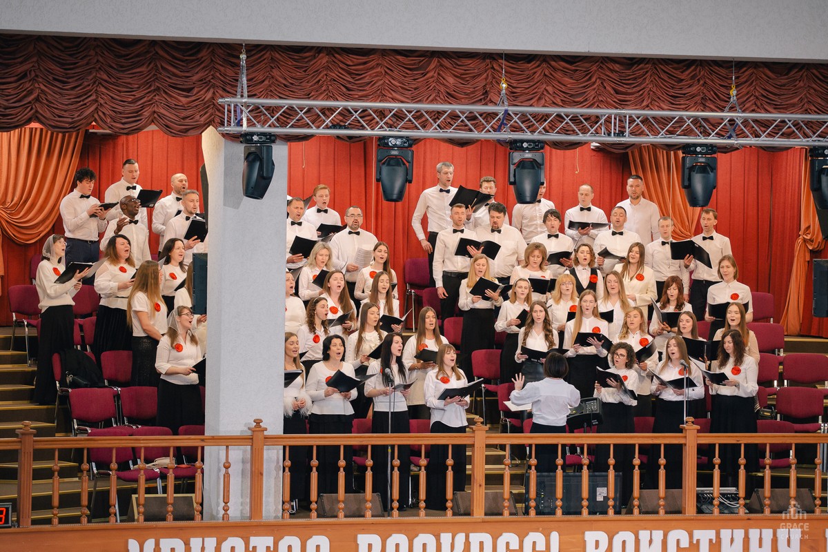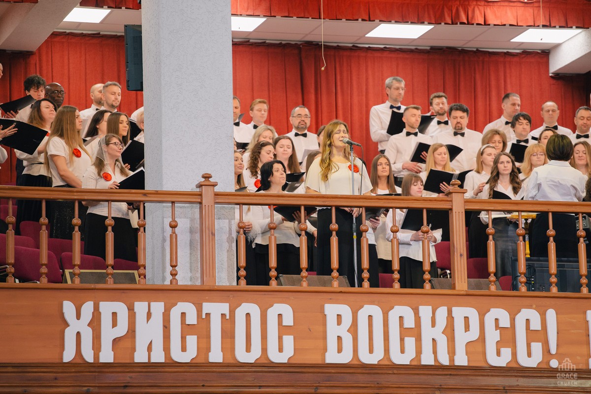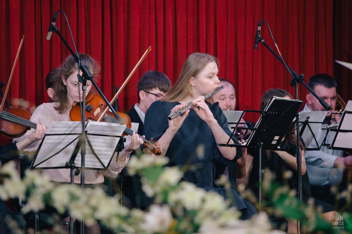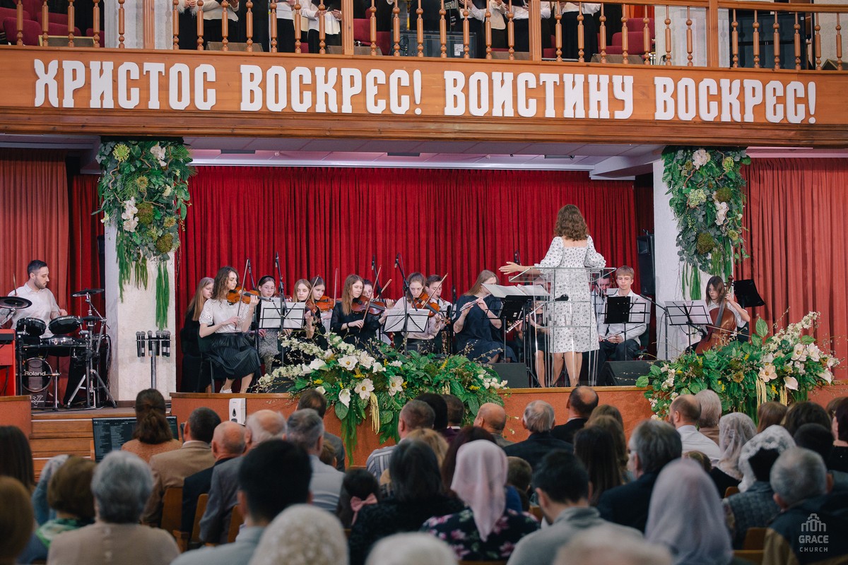 В праздничном богослужении участвовали группы прославления, хоры и оркестр церкви «Благодать».